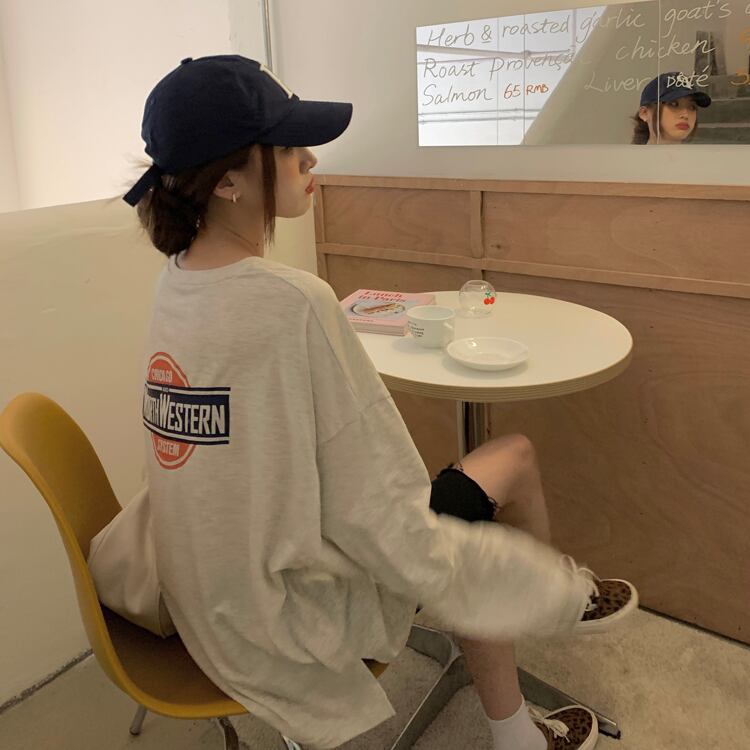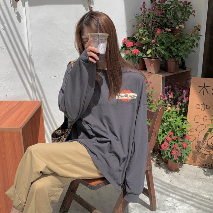 プリントルーズTシャツ シャツ サマースリムスタンダード ロング レトロ 夏物 kumikum21352395233