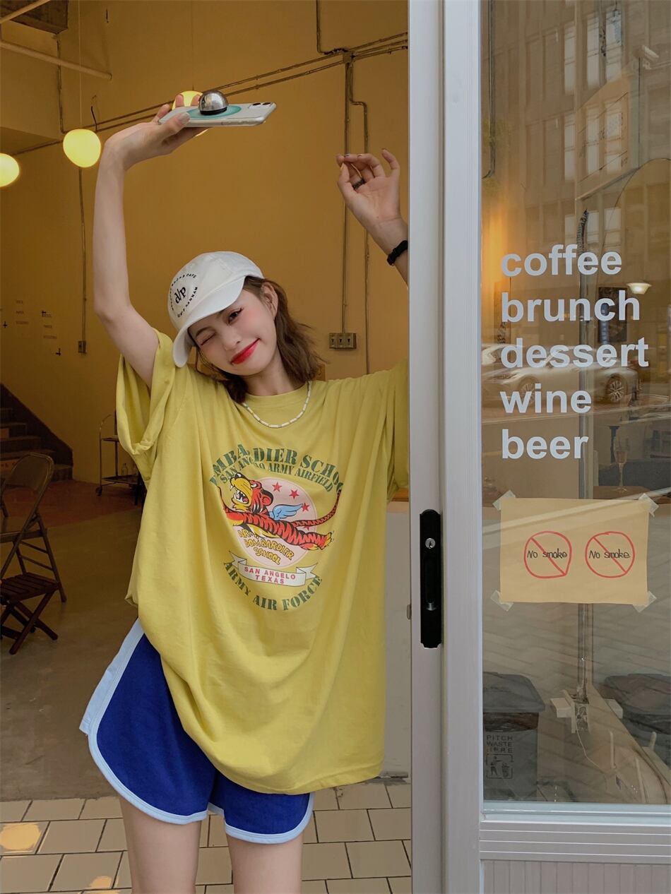 サマープリント柄ルーズシャツ カジュアルTシャツ レディース 夏物 kumikum71399066440