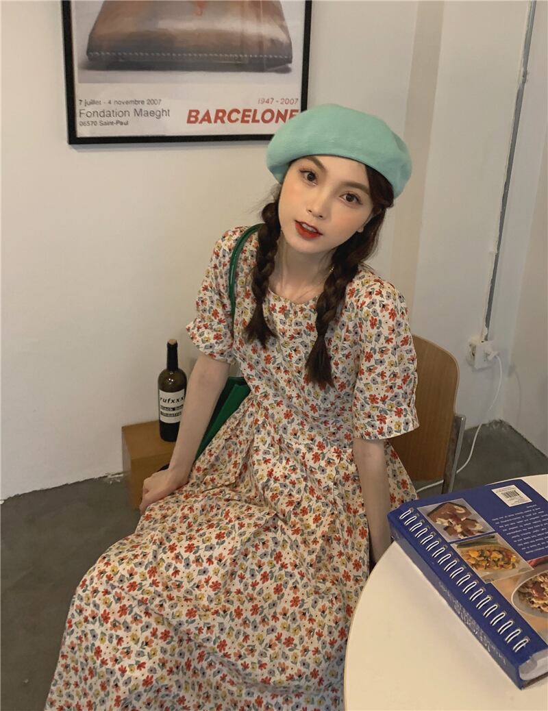 薄手フローラルミディスカート サマースリーブドレス レディース 夏物 花柄 kumikum60804267757