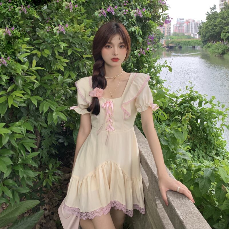 ギャザードレス サマースリム 大人ガーリー スウィート キュート カジュアル 夏物 kumikum44775123362