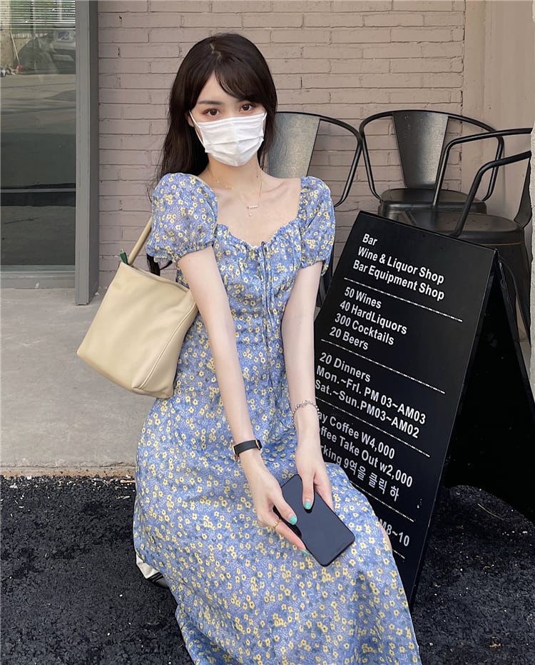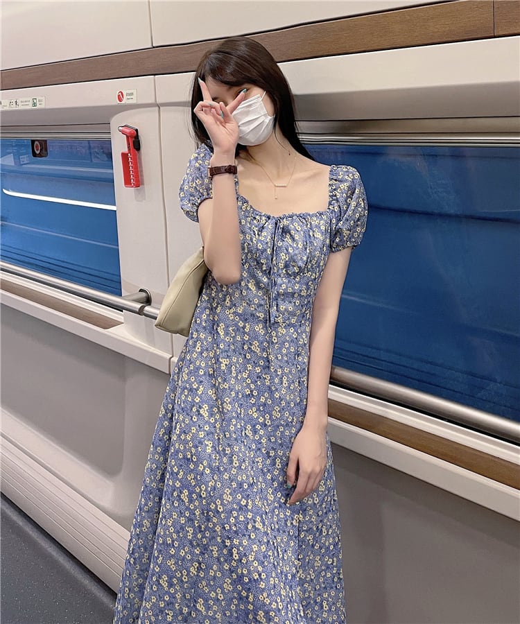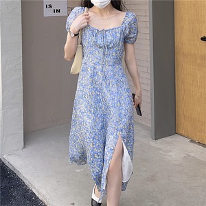 フローラルスカート サマーカラースリムスリットドレス 夏物 花柄 スクウェア kumikum70930318742