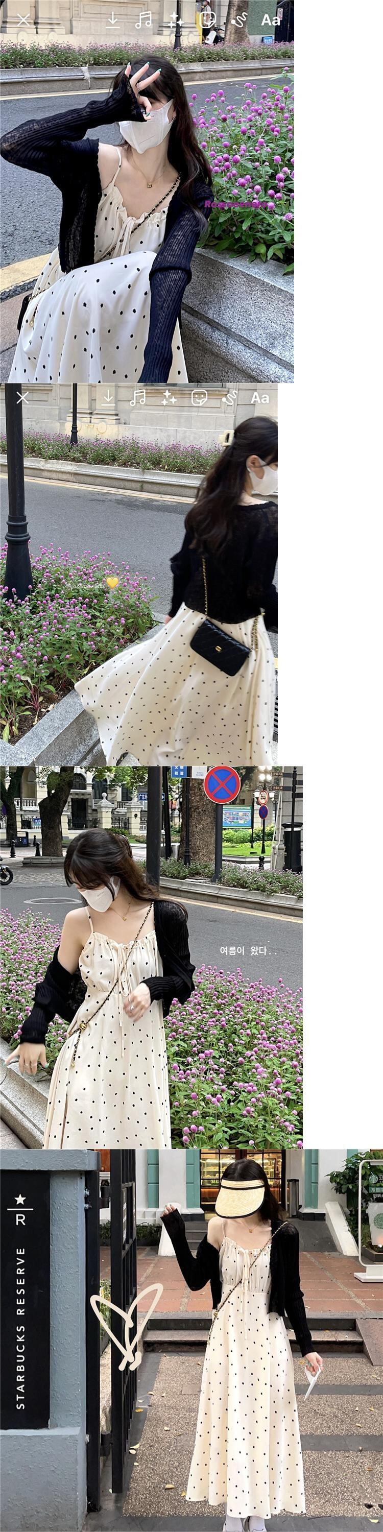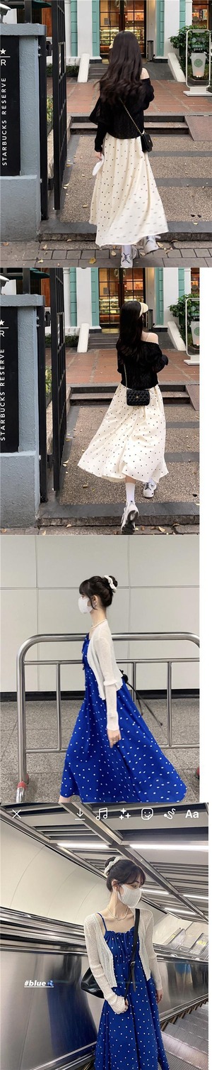 色:アプリコット水玉スカート,ブルーの水玉スカート,白いカーディガン,ブラックカーディガン