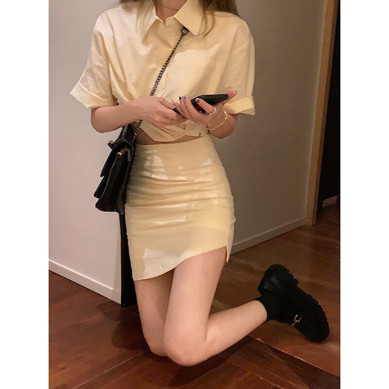 サマーショートシャツ スリムスカート 大人ガーリー スウィート キュート カジュアル 夏物 kumikum2295607322