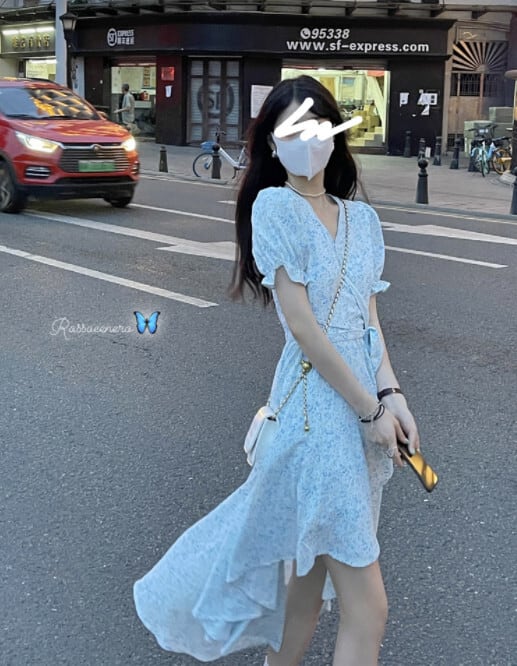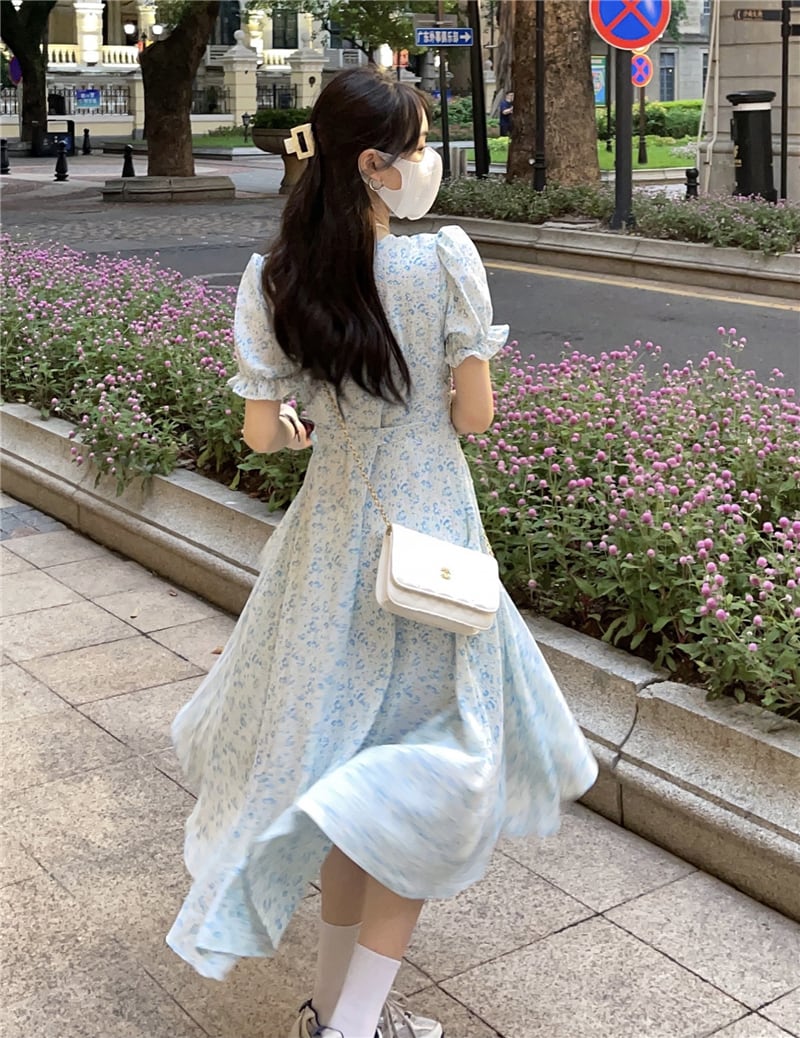 ウェストシフォンフローラルミディスカート サマーVネック薄手ドレス 夏物 花柄 kumikum56630976636