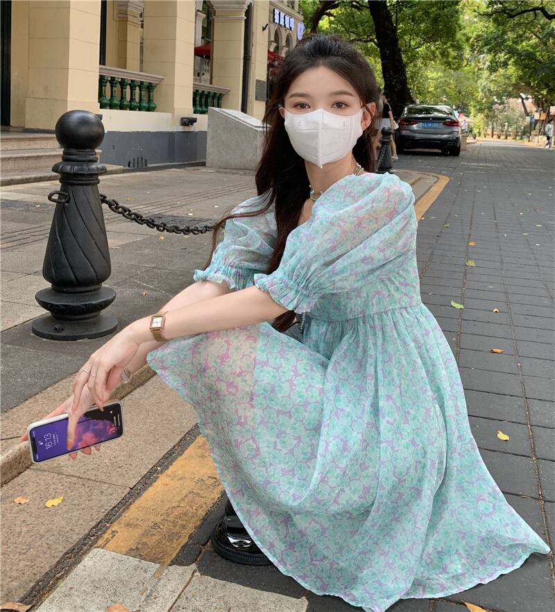 薄手シフォンショートスカート サマーウェストフローラルドレス 夏物 花柄 スクウェア kumikum84378656891