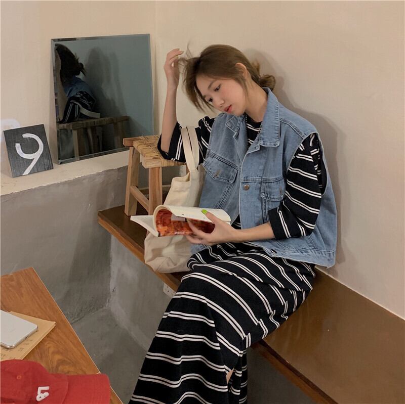 スタイルストライプミディスカート サマースタンダードルーズレディース レトロ 夏物 kumikum64999121196