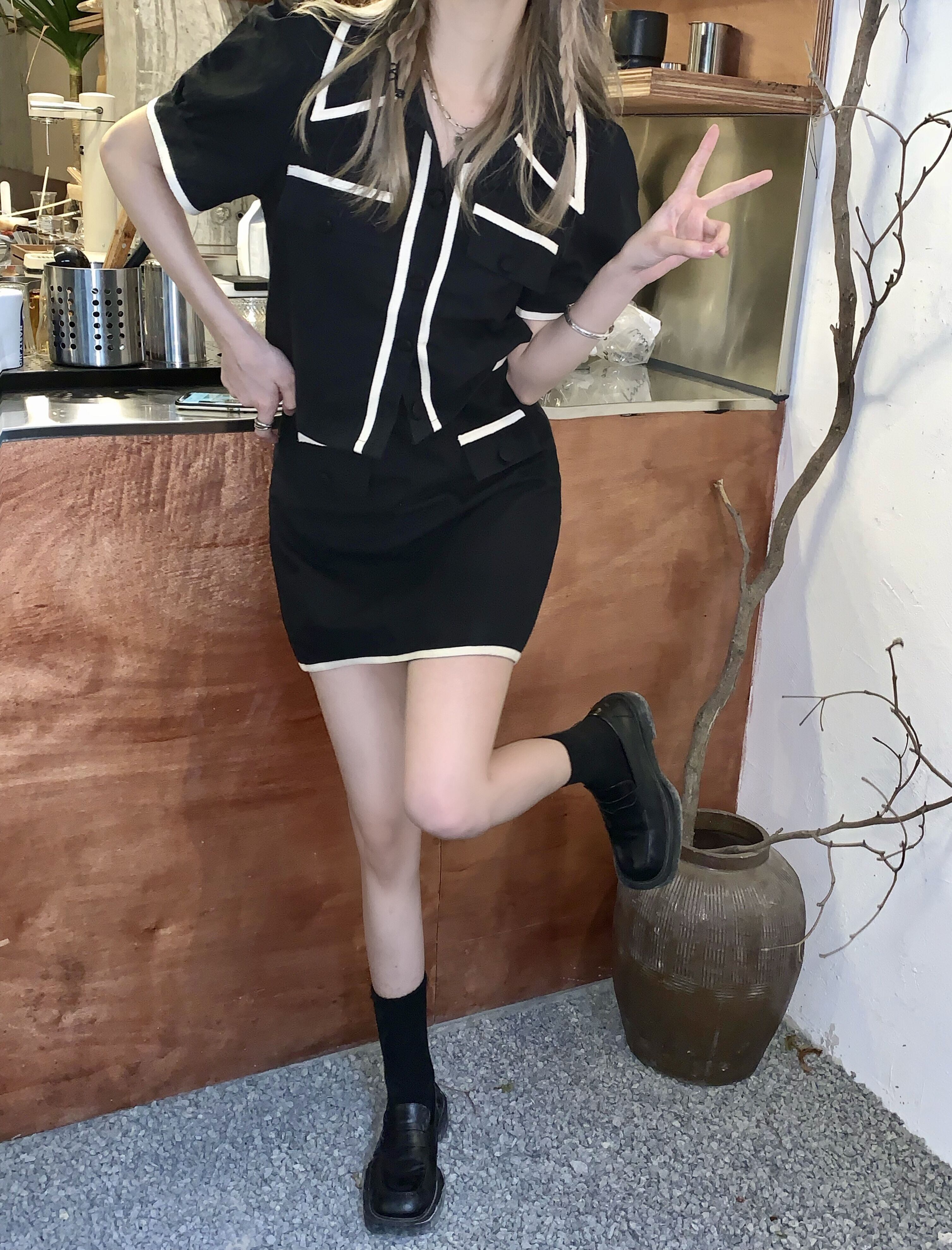 サマーカラーカーディガンジャケット ハイウェストウェストショートスカート 大人ガーリー スウィート キュート カジュアル 夏物 kumikum52516725948