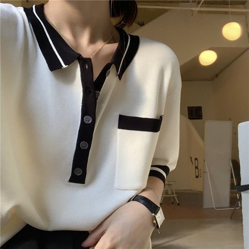 スタンダードカラーセーター サマー薄手カジュアルスリムトップス レディース レトロ 夏物 kumikum4057043740