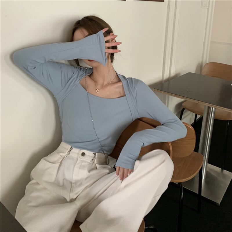 Tシャツ シャツ スリムオータムソリッド カラートップス ロング 秋物 ソリッドカラー kumikum39648625447