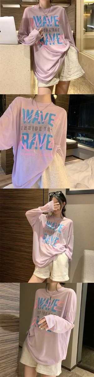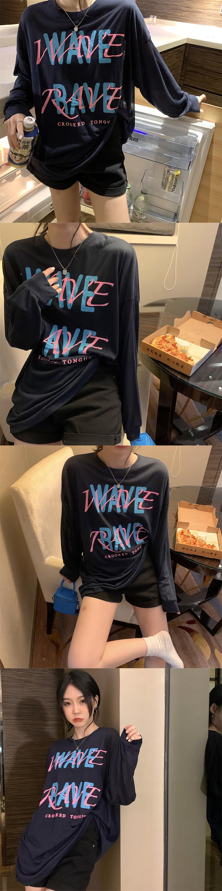 薄手Tシャツ シャツ スタイルプリントルーズオータムトップス ロング 秋物 kumikum79768818177