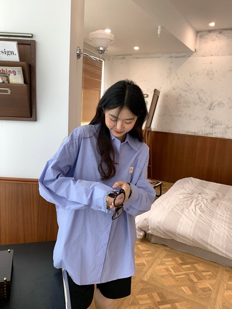 ホワイトシャツ レースオータムカジュアルルーズトップス ロング 秋物 ステッチ kumikum15613564544