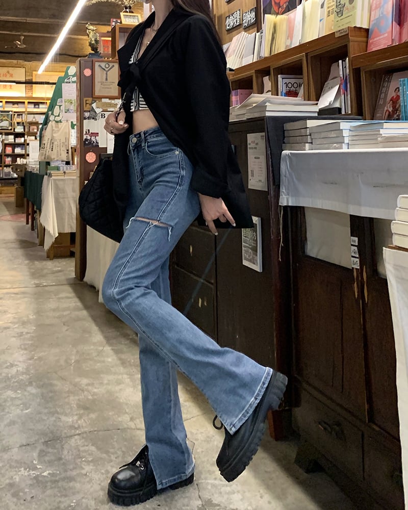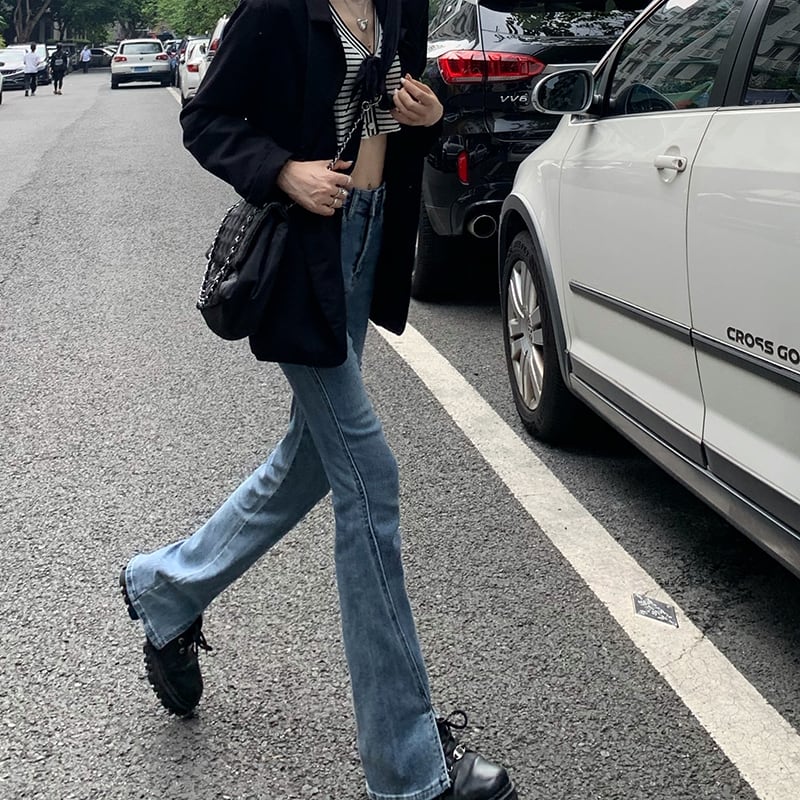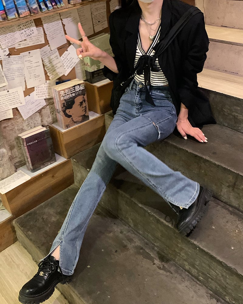 ジーンズ オータムハイウェストウェストスリムスリットパンツ レッド 秋物 kumikum83250011659