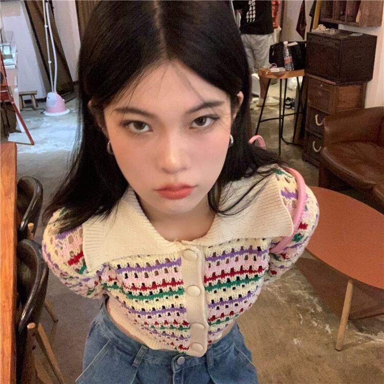 ストライプニットセーター カーディガンオータムショートコート ロング 秋物 kumikum76027304828