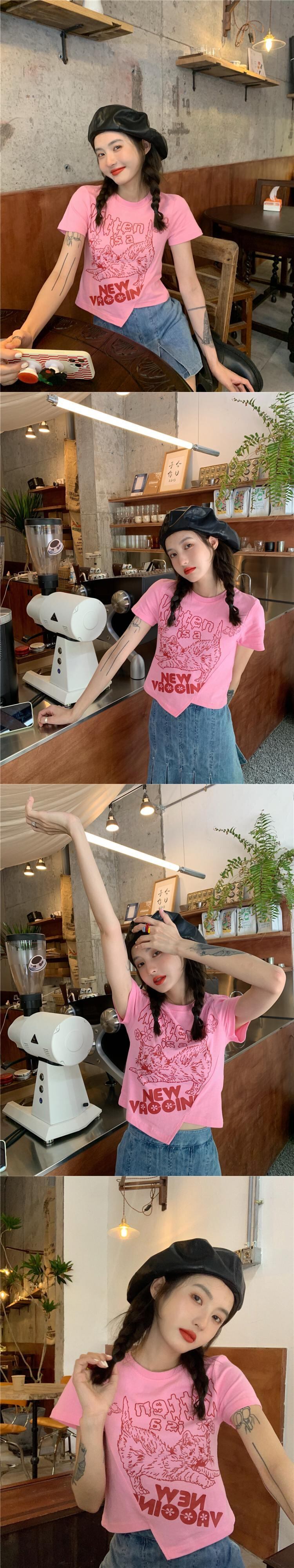 ショートTシャツ シャツ サマープリントスリムトップス ピンク 大人ガーリー スウィート キュート カジュアル 夏物 kumikum97830823192