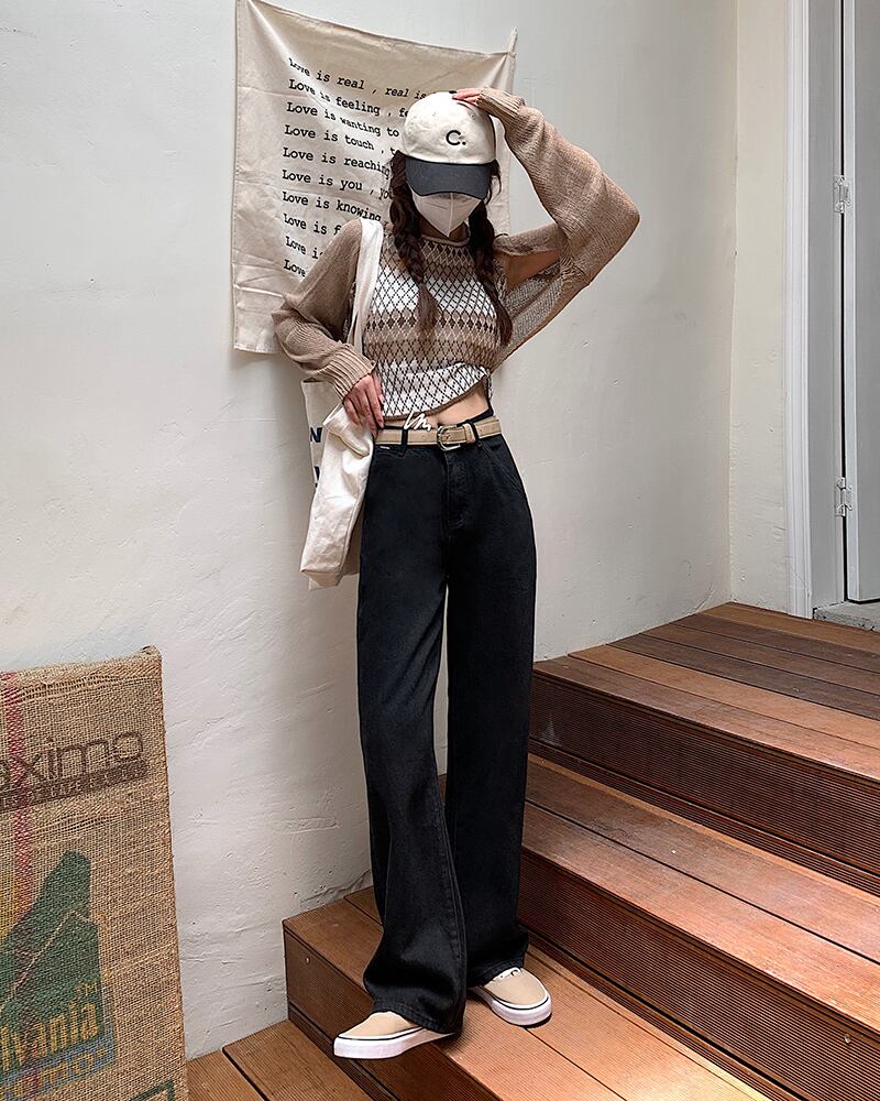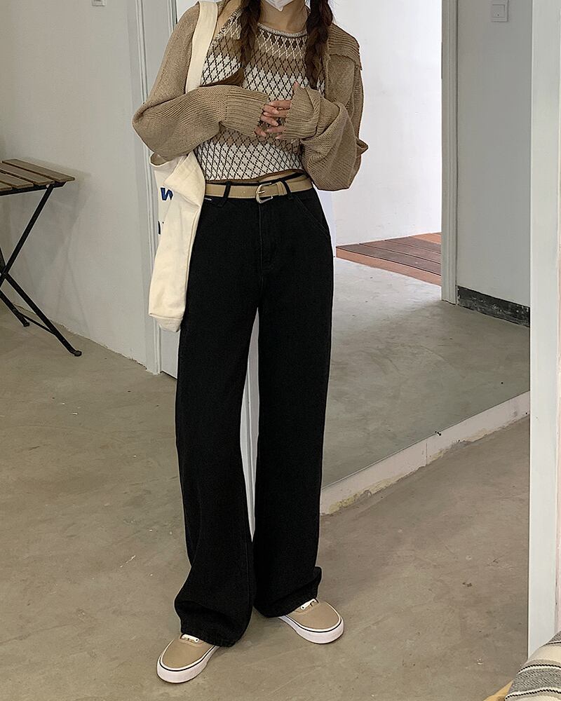 ブラックパンツ ハイウェストウェストスリムジーンズ オータムワイドレッグカジュアルレディース 秋物 ワイドパンツ kumikum75360883976