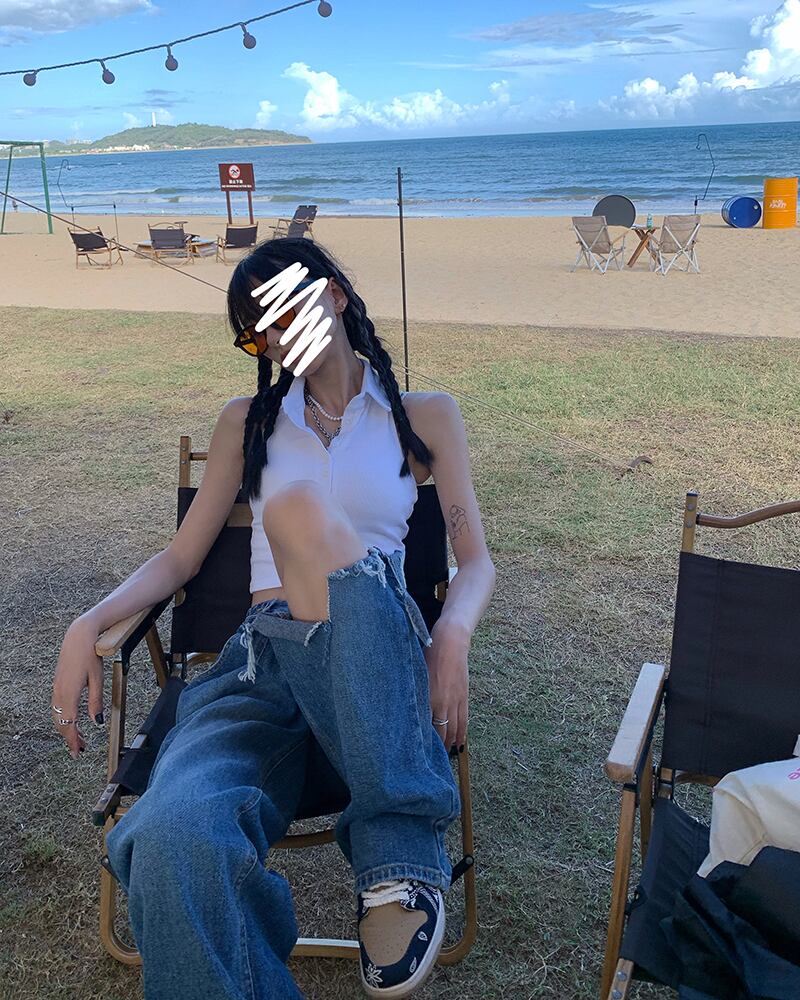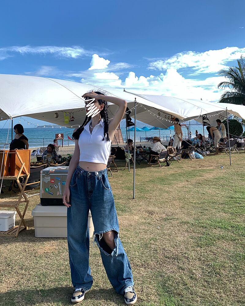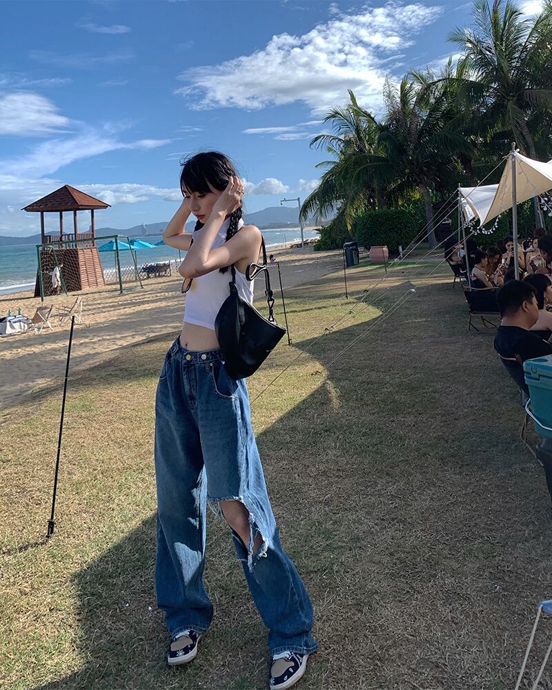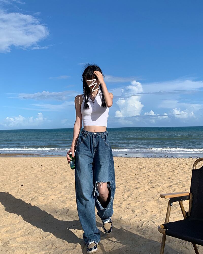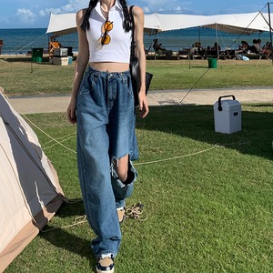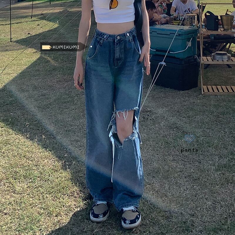 ジーンズ レディースサマー薄手ハイウェストウェストルーズカジュアルパンツ 夏物 kumikum57567769745