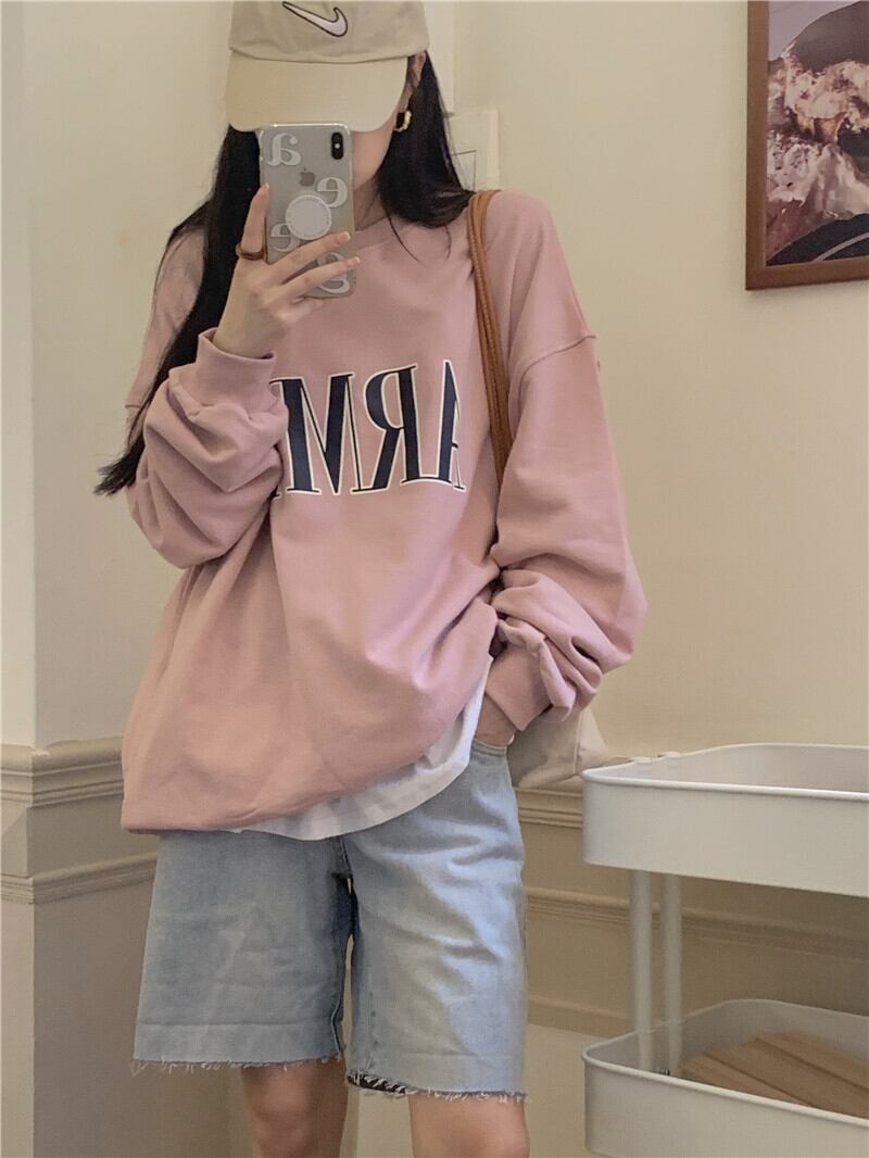 ルーズ薄手セーター レディースオータムスタンダードプリントシャツ ロング レトロ 秋物 kumikum70047866174