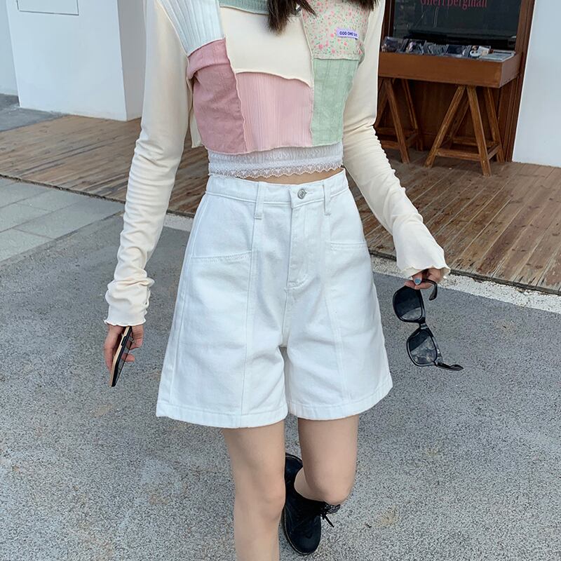 スタンダードハイウェストウェストジーンズ レディースルーズパンツ サマーカジュアルショーツ レッド レトロ 夏物 ブルマー kumikum60314343368