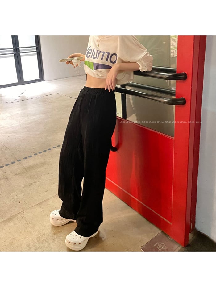 ブラックパンツ プリーツカジュアルレディースオータムハイウェストウェスト薄手ルーズ 秋物 kumikum78186723330