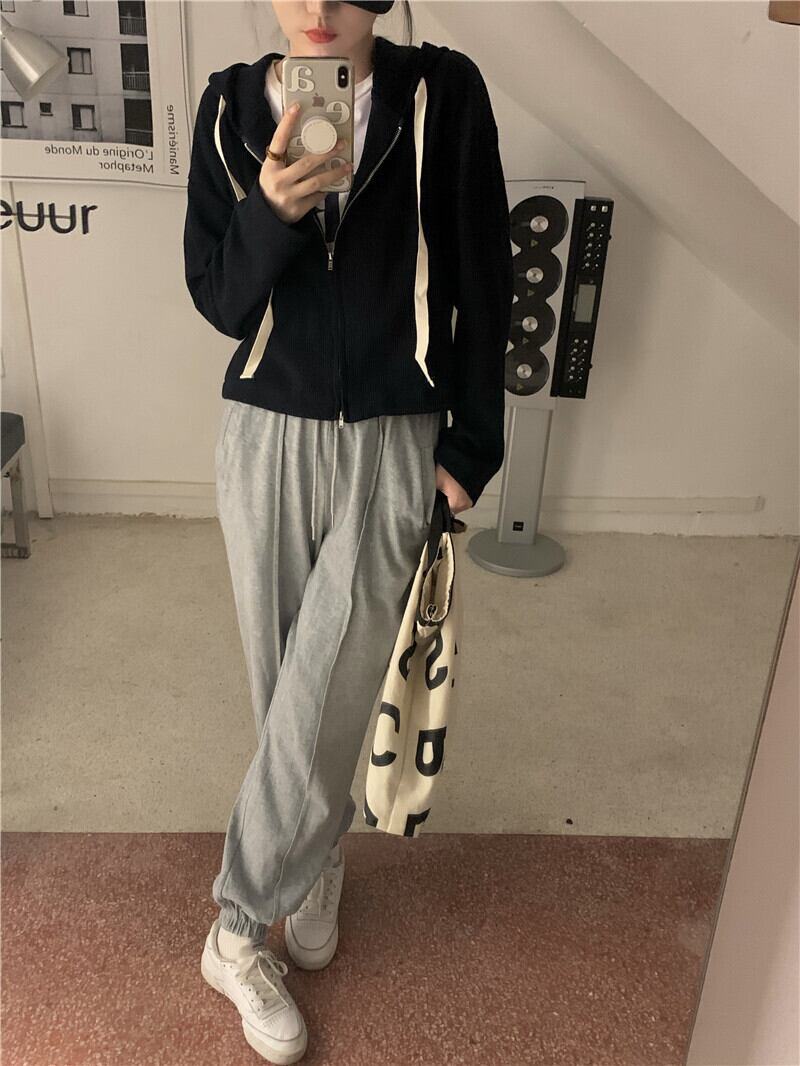 セーター フードトップス オータムジッパー長袖スリーブルーズジャケット ロング 秋物 kumikum42308697808