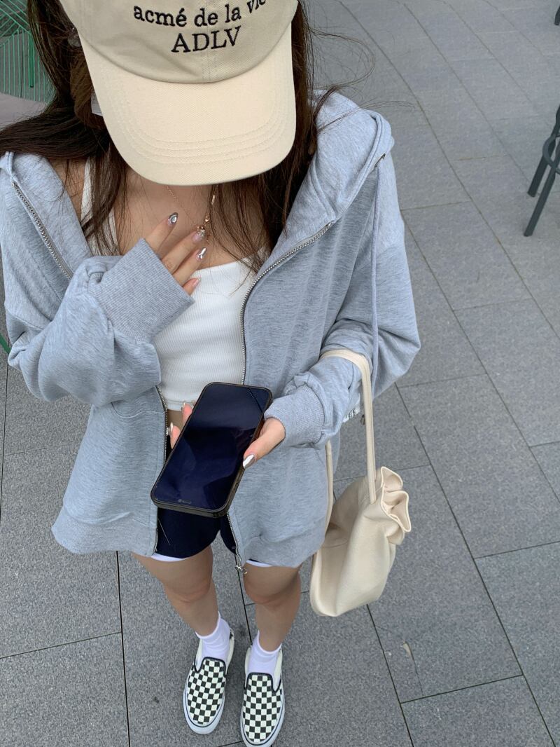 グレーフードセーター レディーススタイルルーズブラウス オータムジッパージャケット ロング 秋物 kumikum60087718428