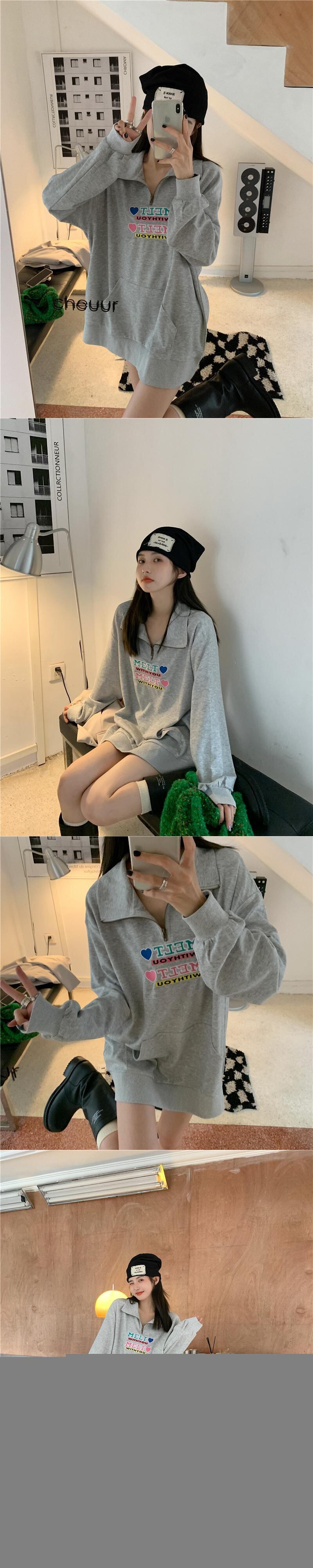 プルオーバー セーター オータムロング薄手ルーズトップス レッド 刺繍 秋物 kumikum75370343161