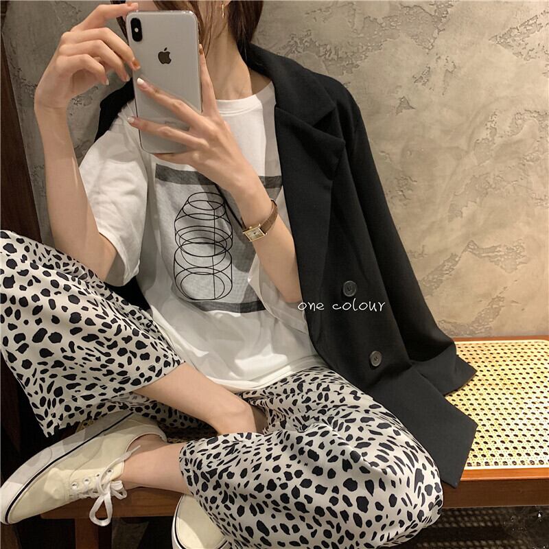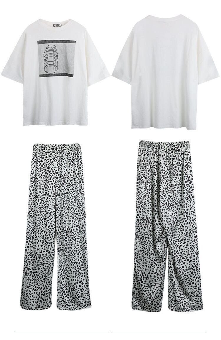 サマールーズプリント柄Tシャツ レオパードカジュアルパンツ 夏物 kumikum20305493409