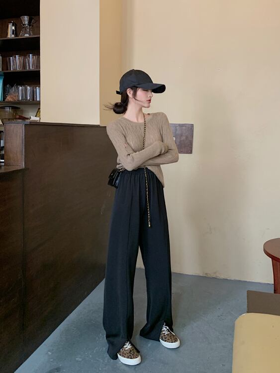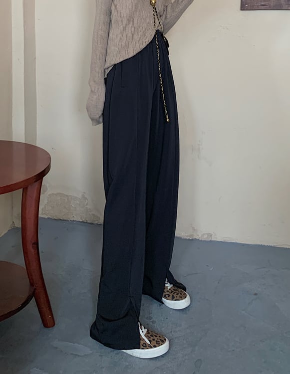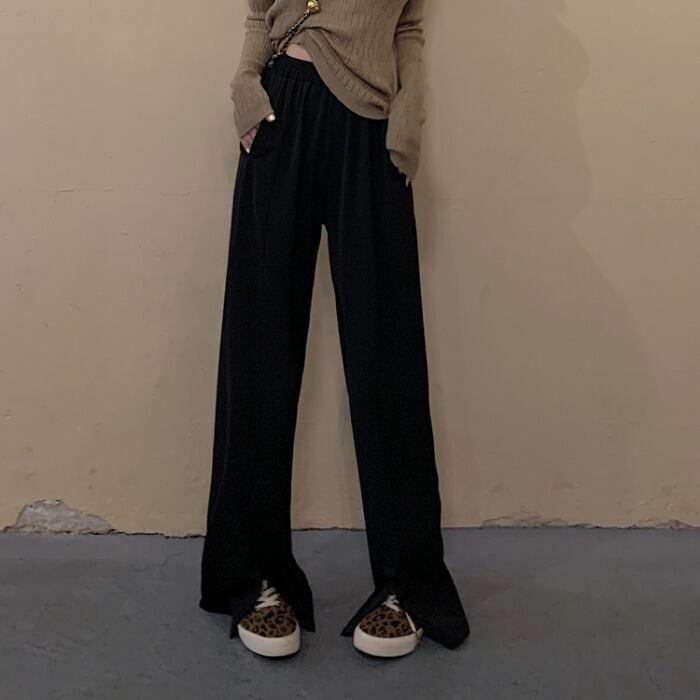 ハイウェストウェストルーズパンツ ブラックオータムワイドレッグレディース 秋物 ワイドパンツ kumikum5691325344