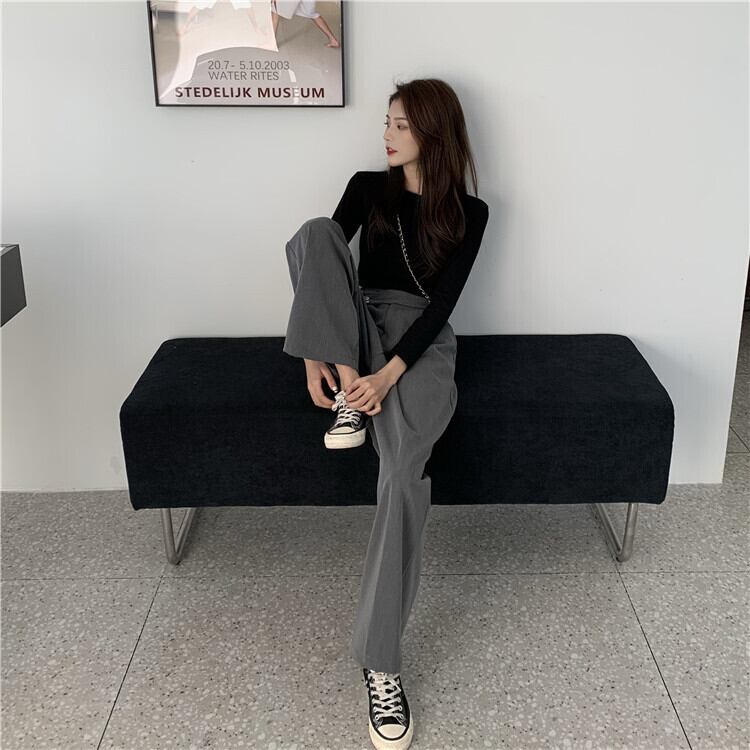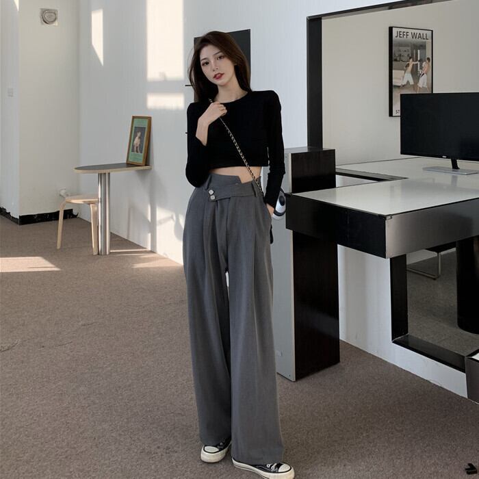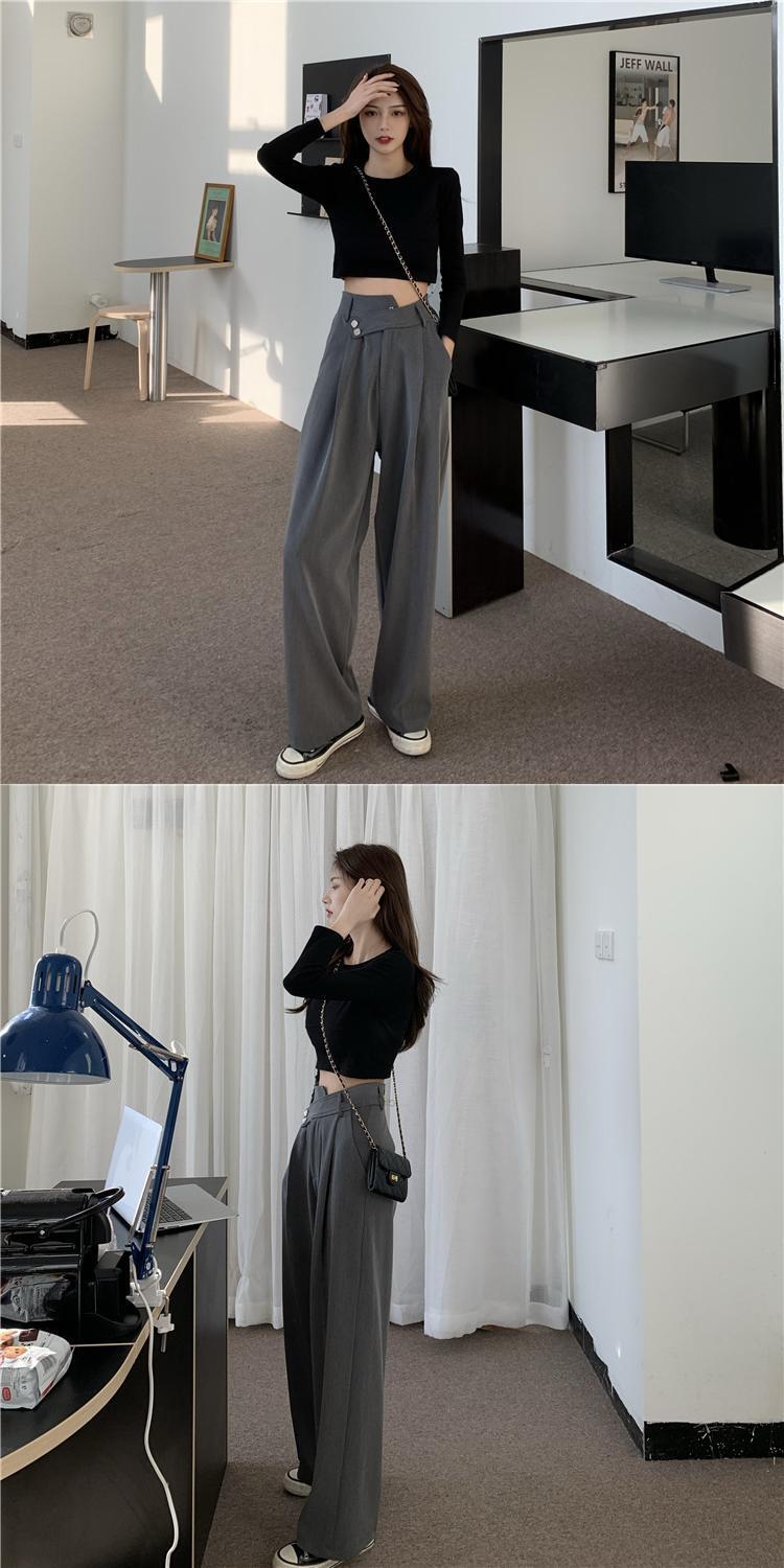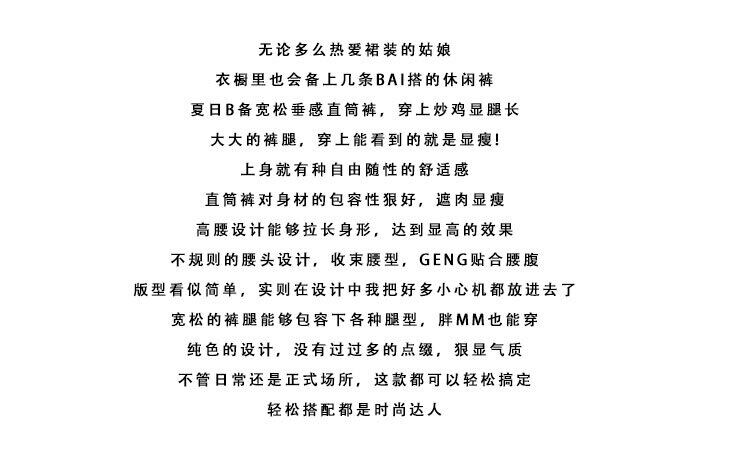 カジュアルパンツ サマー薄手ルーズソリッド カラーハイウェスト 夏物 ソリッドカラー kumikum70599506144