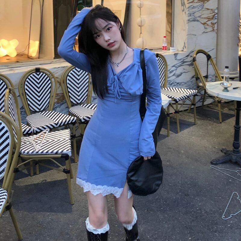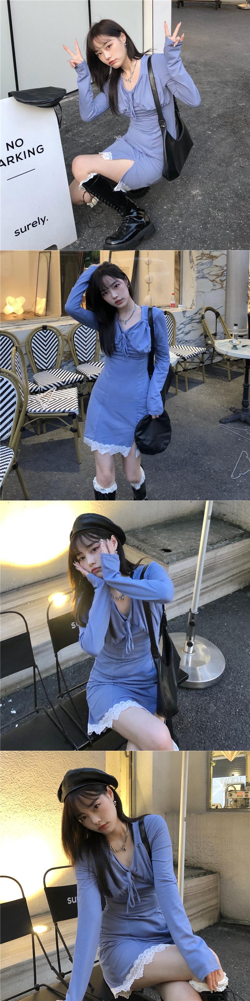 ウェストスカート レースドレス オータムスリムレディース 大人ガーリー スウィート キュート カジュアル 秋物 ステッチ kumikum4875325820