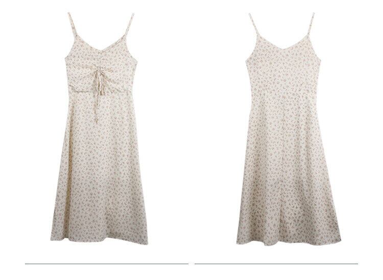 スタンダードVネックフローラルスカート サマーウェストドレス シフォンロング レトロ 夏物 花柄 kumikum10913326228