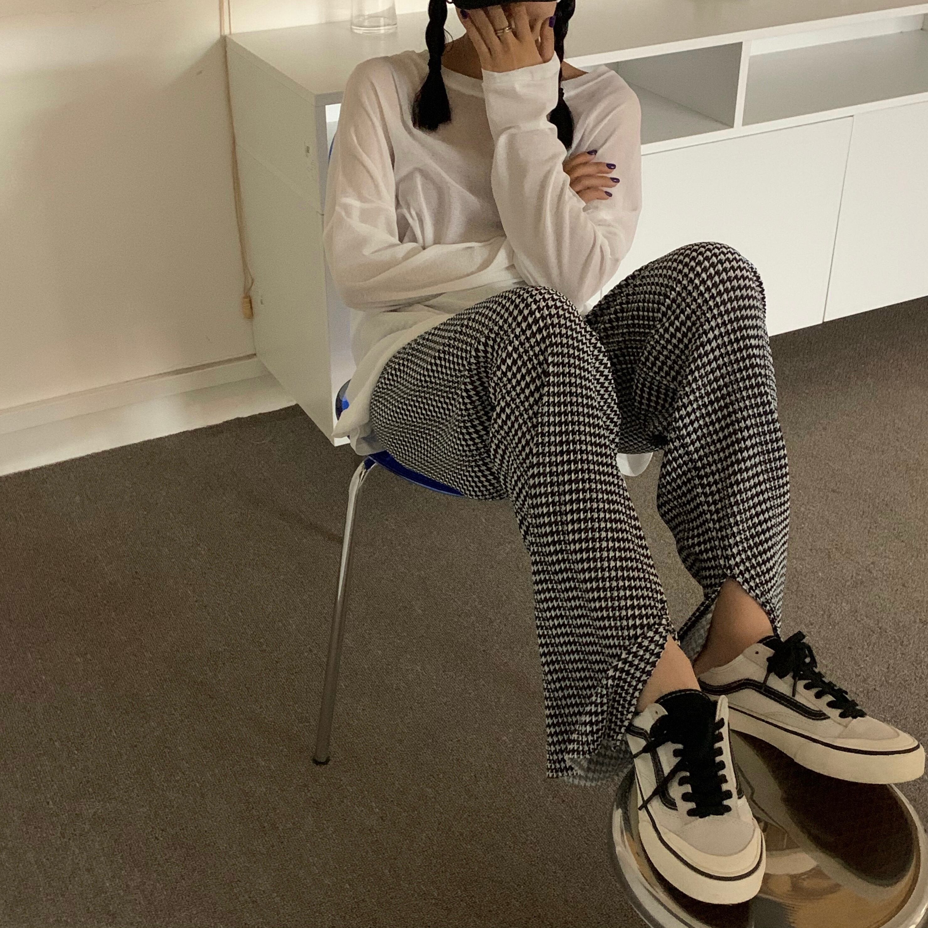 格子柄パンツ サマースタンダードストレッチウェストカジュアル レトロ エラスティック 伸縮 夏物 kumikum33284438518