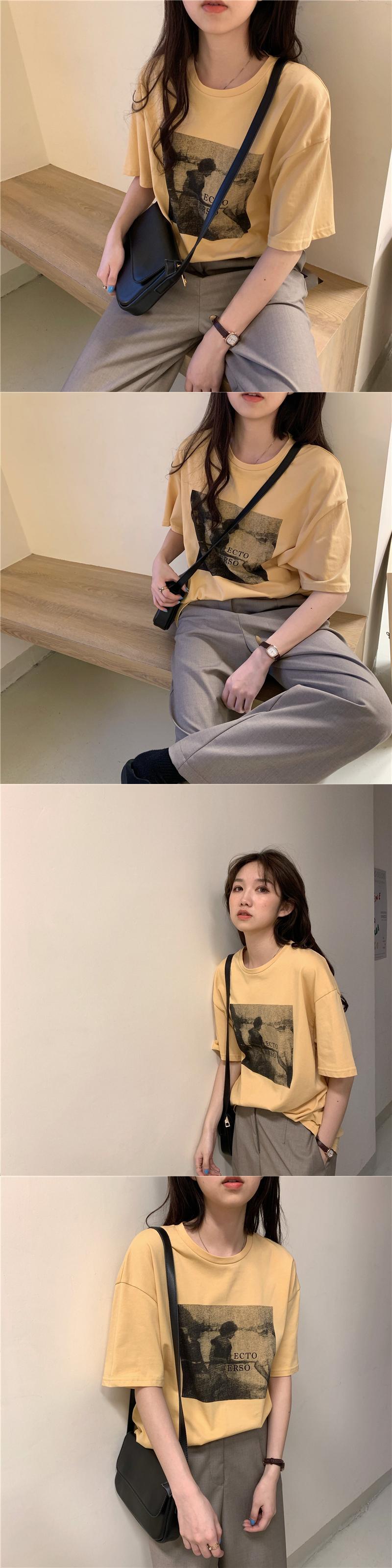 ホワイトプリントラウンドネックシャツ ブラウス レディースサマールーズカジュアルTシャツ 夏物 Oネック kumikum36189088245