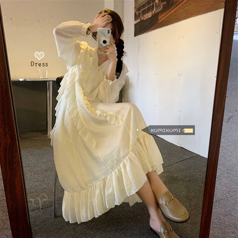 Vネックスカート オータムドレス ロング 秋物 kumikum37933317600
