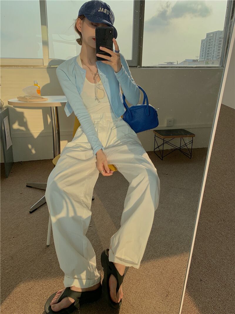 パンツ サマーハイウェストウェスト薄手ルーズロング 夏物 kumikum28500211170