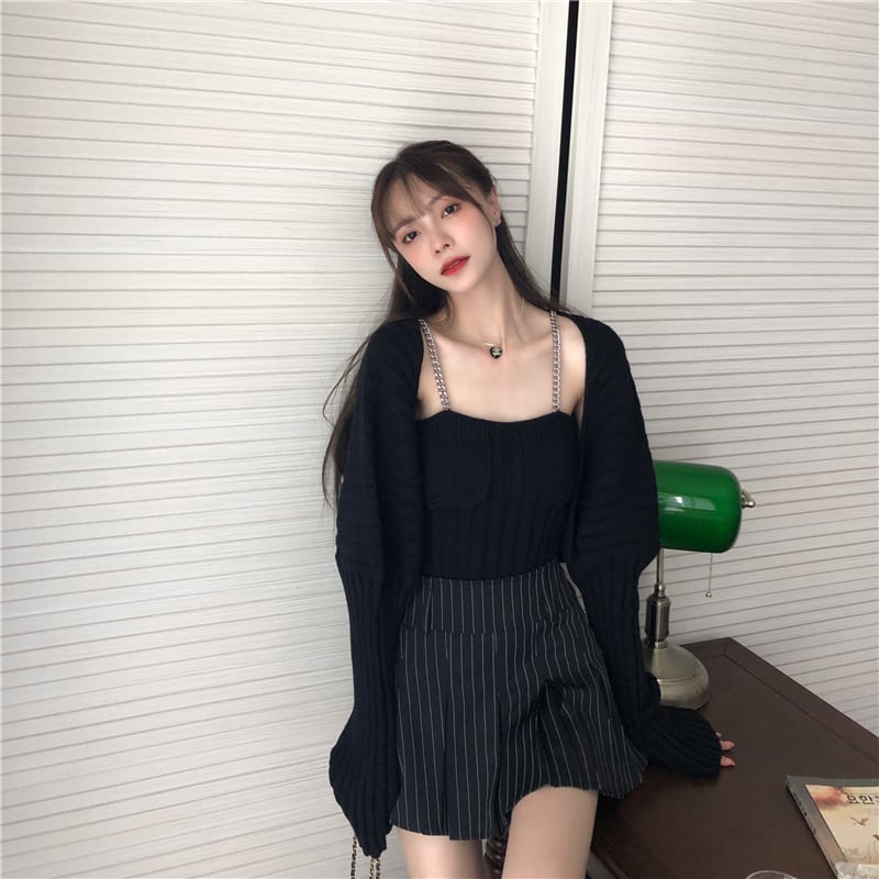 色:黒のセーターカーディガン+ベスト,グレーのセーターカーディガン+ベスト,ストライプスカートS,ストライプスカートM,黒スカートS,黒スカートM