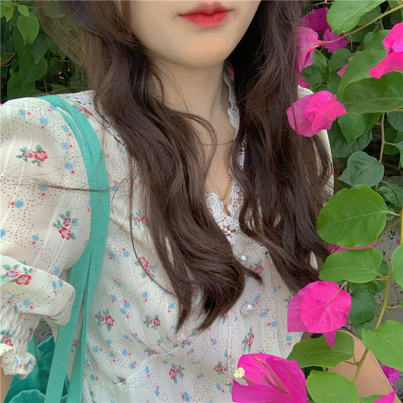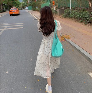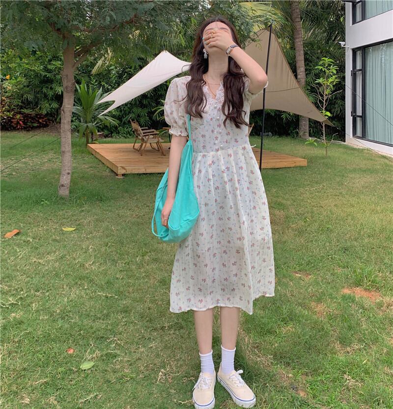 スタンダードフローラルVネックスカート サマーウェストロングドレス レトロ 夏物 花柄 kumikum90027704587