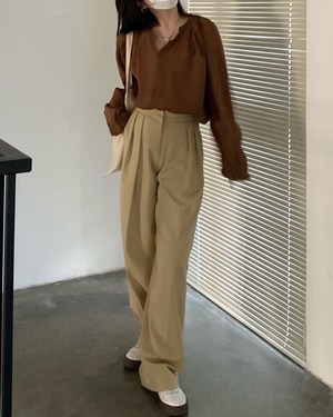 パンツ オータムハイウェストウェストルーズカジュアル 秋物 kumikum98360173991
