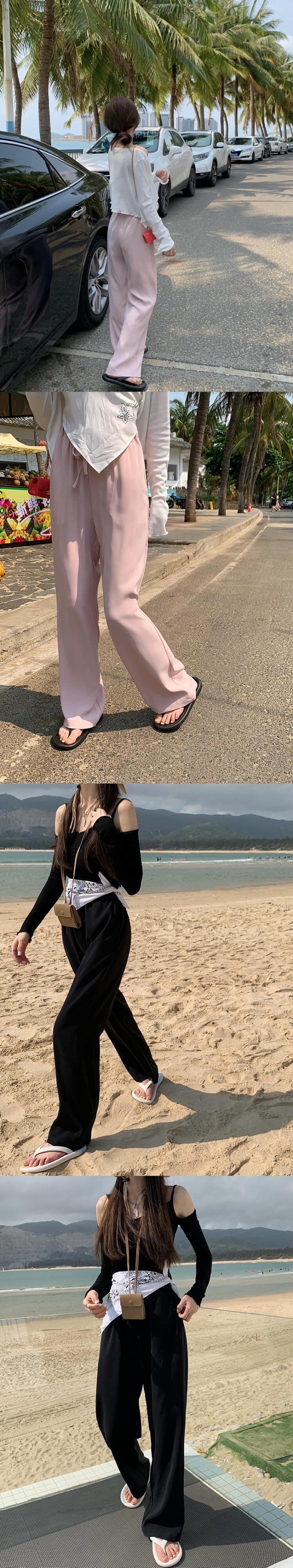 パンツ サマーストレッチハイウェストウェストカジュアルルーズ薄手 エラスティック 伸縮 夏物 kumikum33213732313