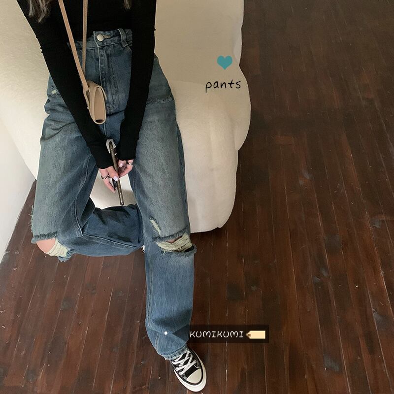 ジーンズ サマースタンダードハイウェストウェスト薄手パンツ ルーズ レトロ 夏物 kumikum46683641576