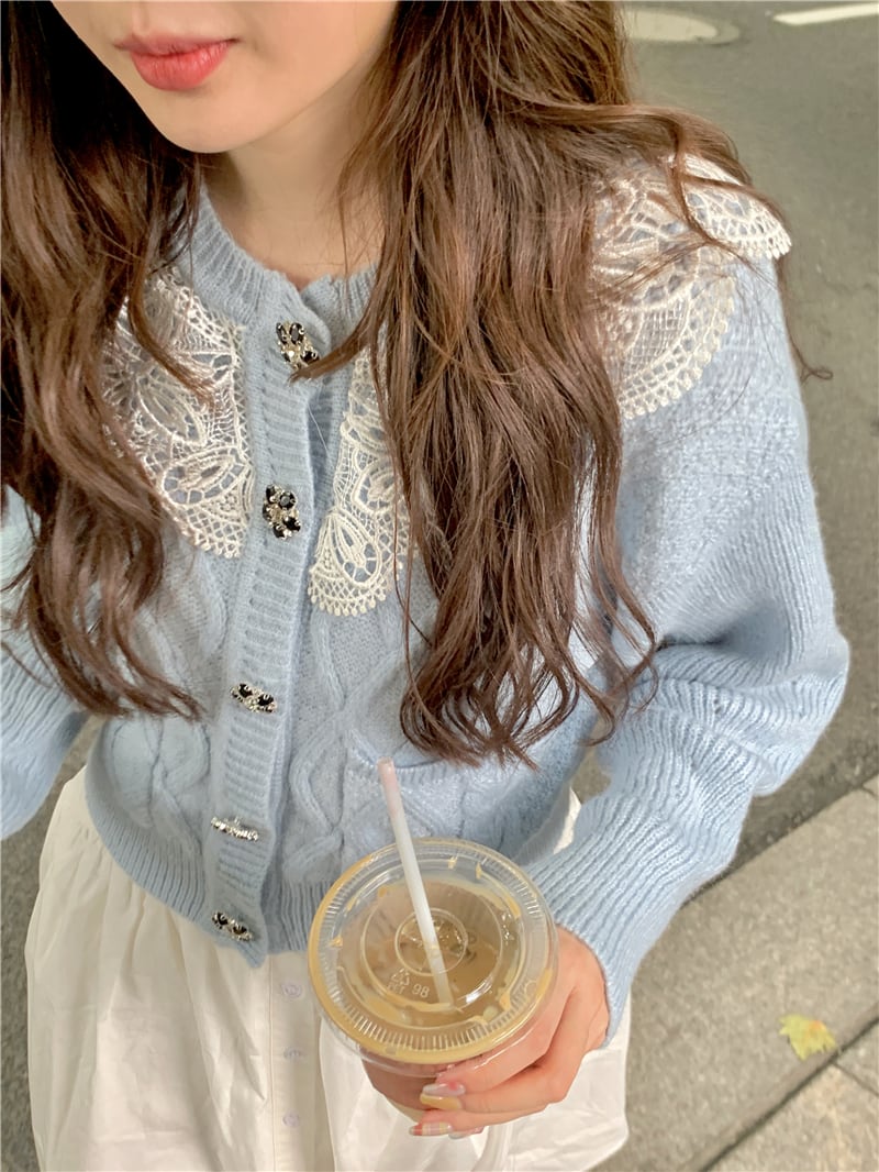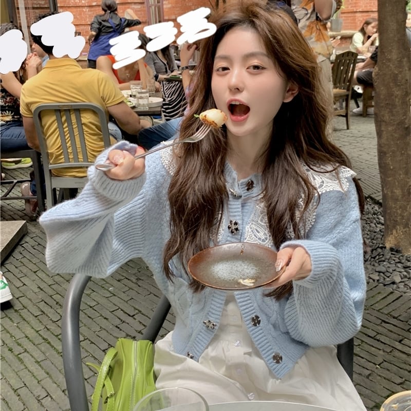 ニットセーター トップス レディースオータムレースルーズショートコート 秋物 ステッチ kumikum30023651646