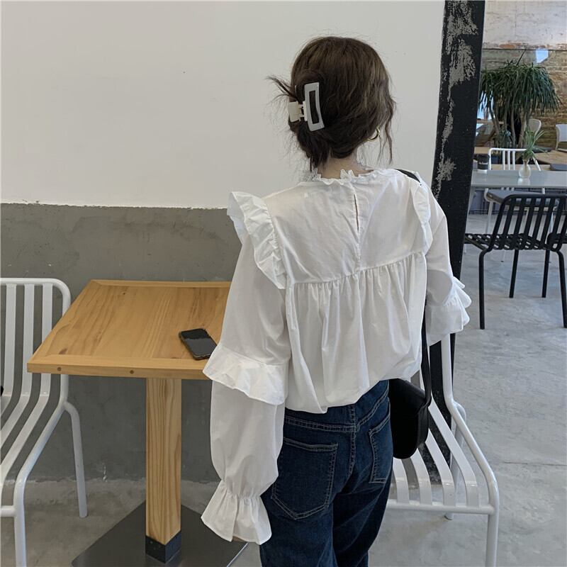 レーススリーブシャツ ホワイトオータムブラウス レディース ロング レッド 秋物 ステッチ kumikum14696936987