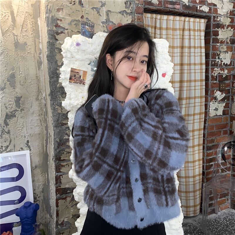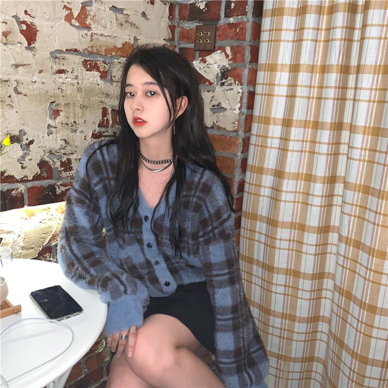 スタンダードVネックルーズ格子柄オータムウィンターコート レディース ロング レトロ 秋物 冬物 kumikum77735095318