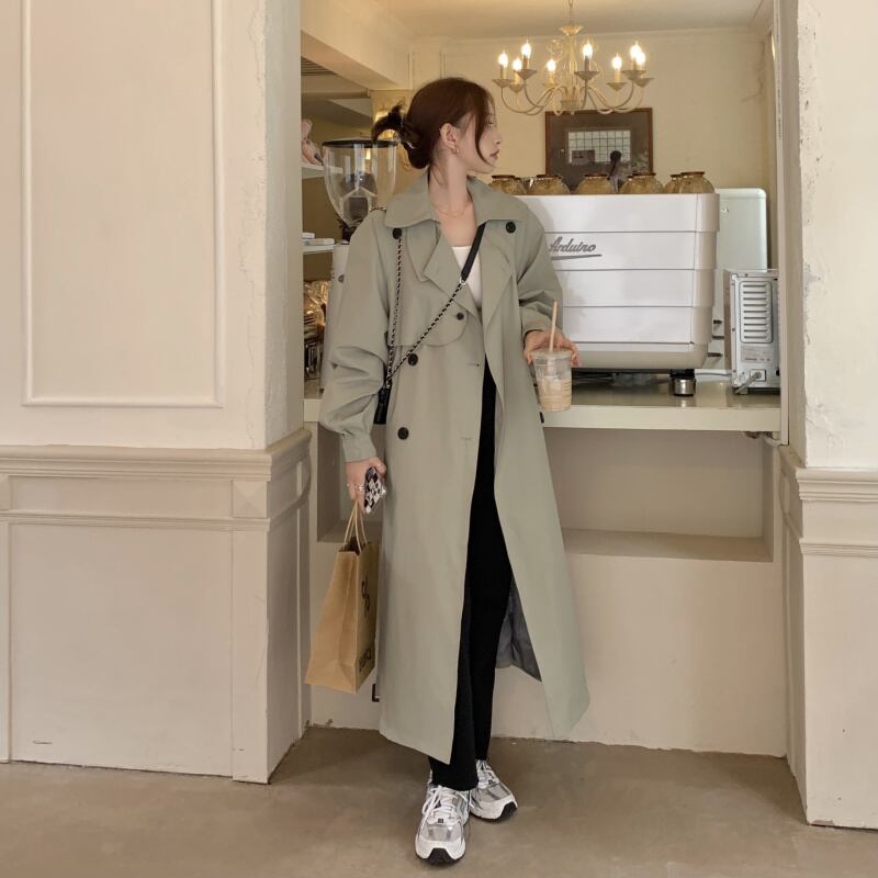 カーキロングコート レディースオータムカジュアルジャケット スタンダード薄手 レトロ 秋物 kumikum71478747898