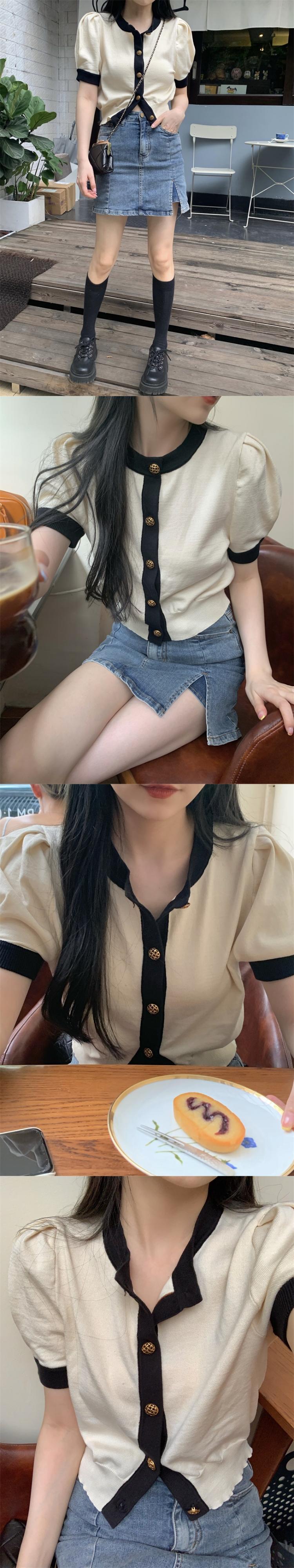 スリムカラーショートニットカーディガンサマースリーブトップス レディース 夏物 kumikum21955495415