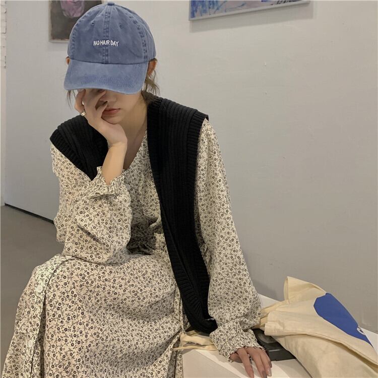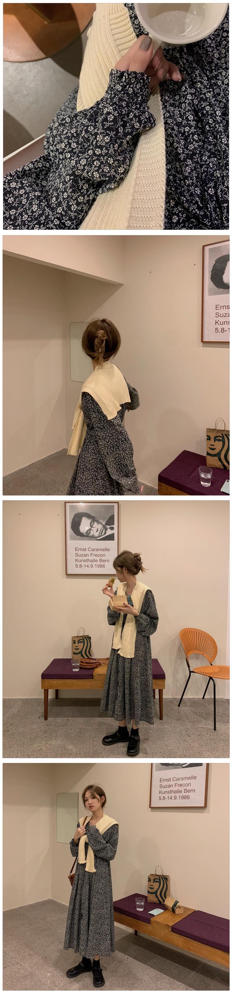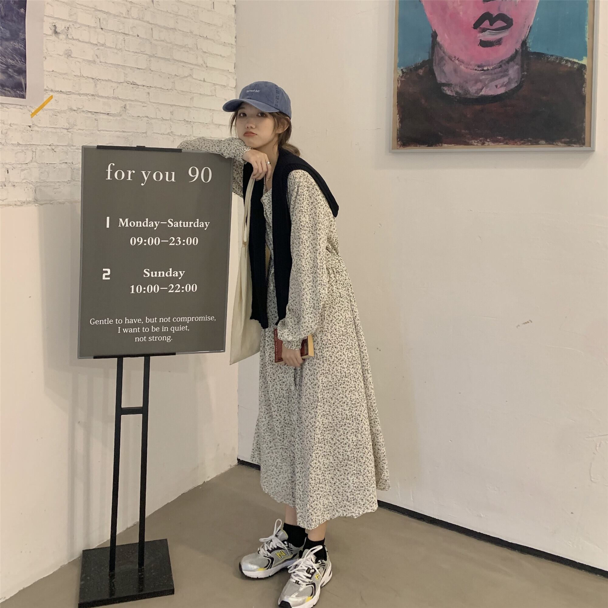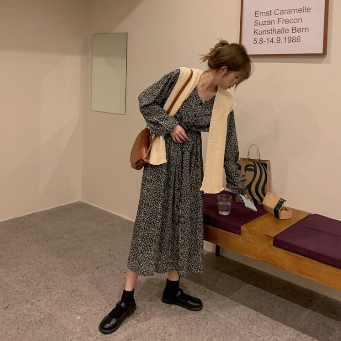 Vネックフローラルシフォンロングスカート オータムドレス レディース 秋物 花柄 kumikum53629882679