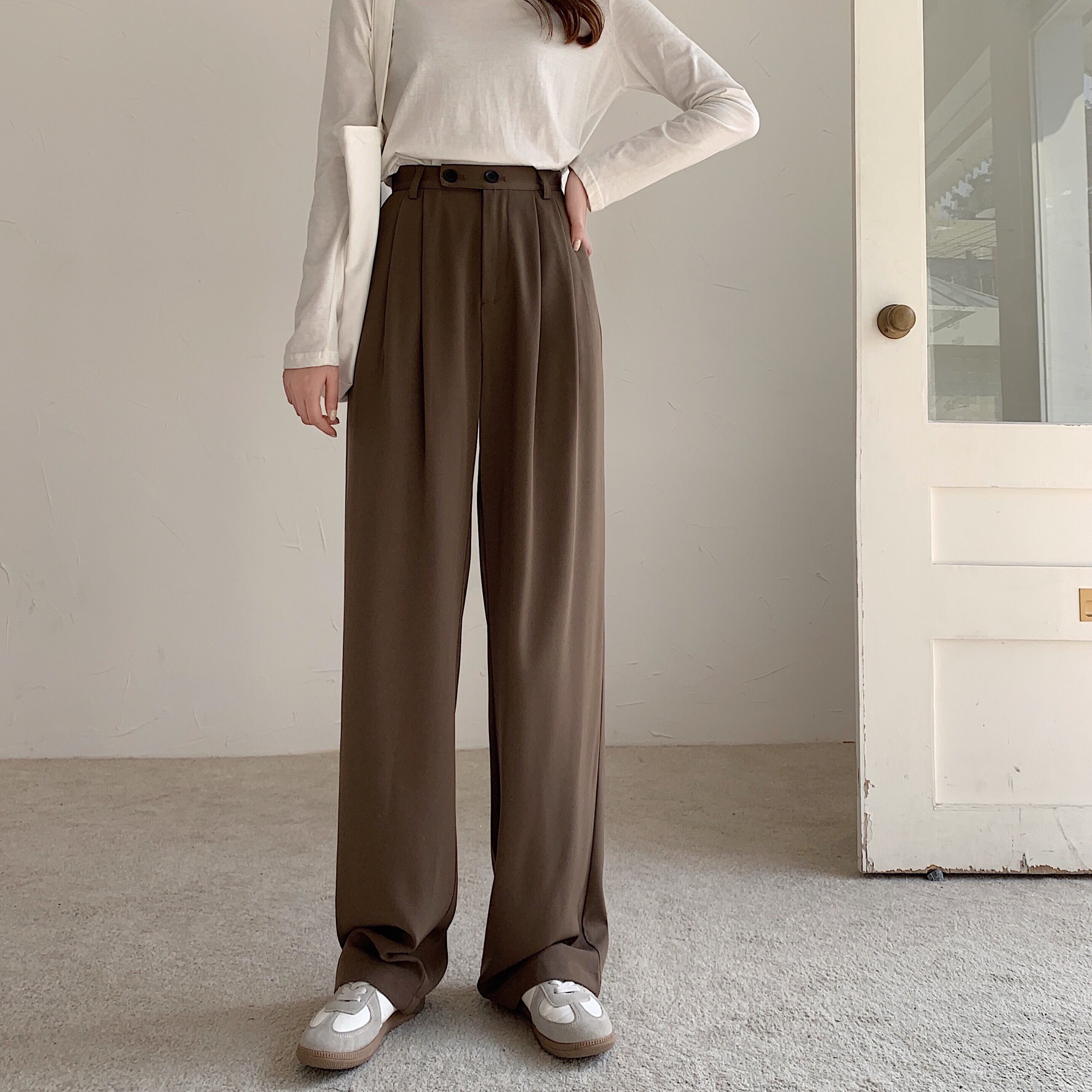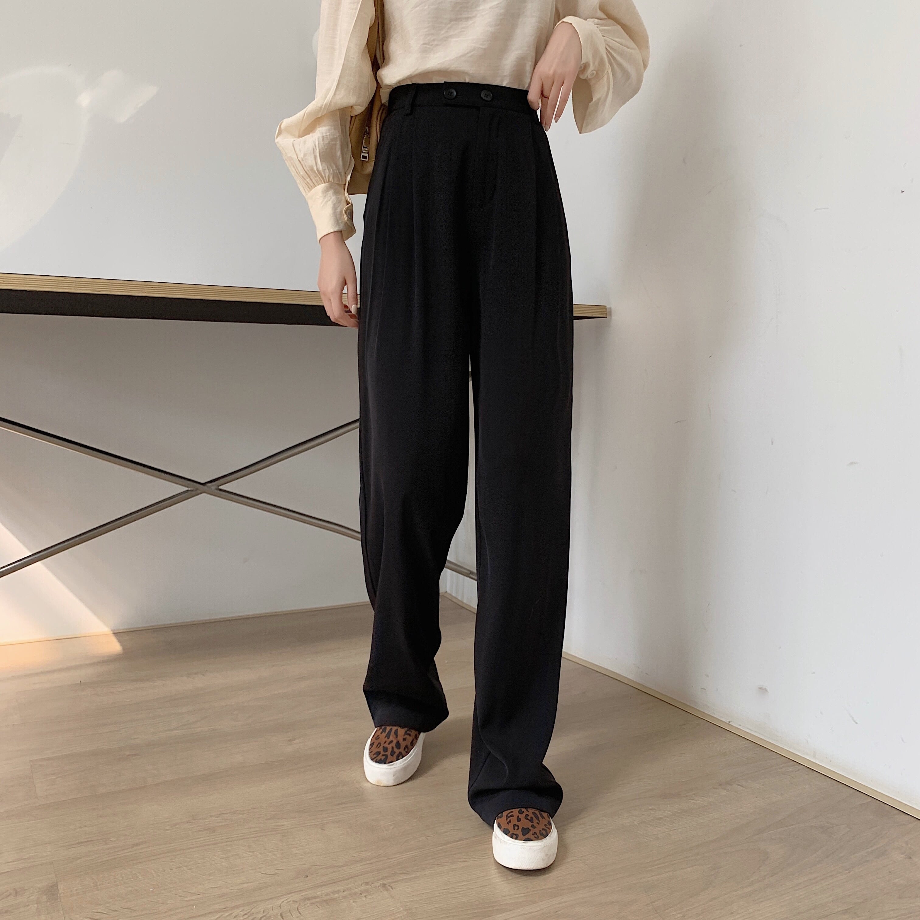 スタンダードパンツ レディースサマー薄手ハイウェストウェストルーズワイドレッグ レトロ 夏物 ワイドパンツ kumikum45161466850
