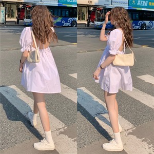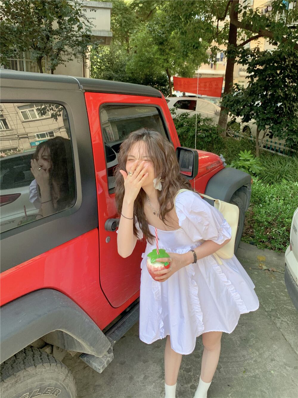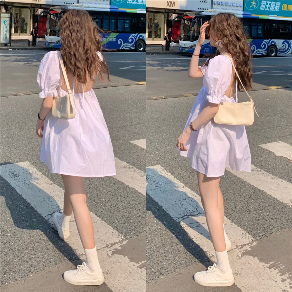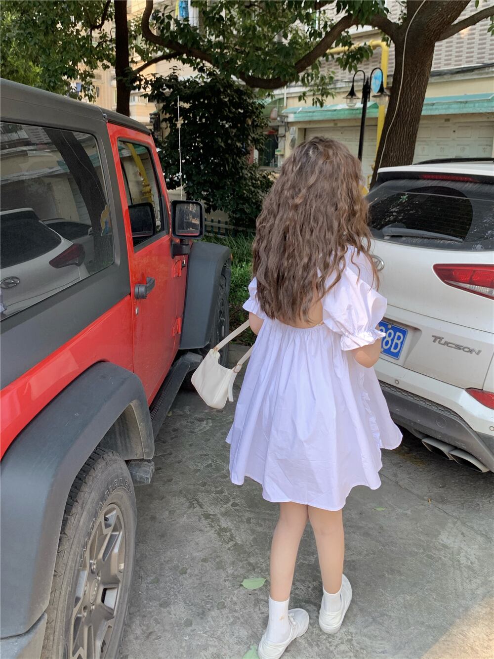 ホワイトスカート サマーカラー薄手ルーズスリーブドレス レディース 夏物 スクウェア kumikum9681858777