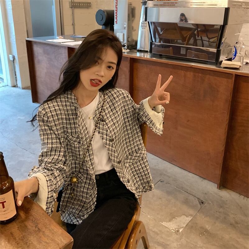 コート オータム格子柄スタンダードルーズトップス レトロ 秋物 kumikum11266825286