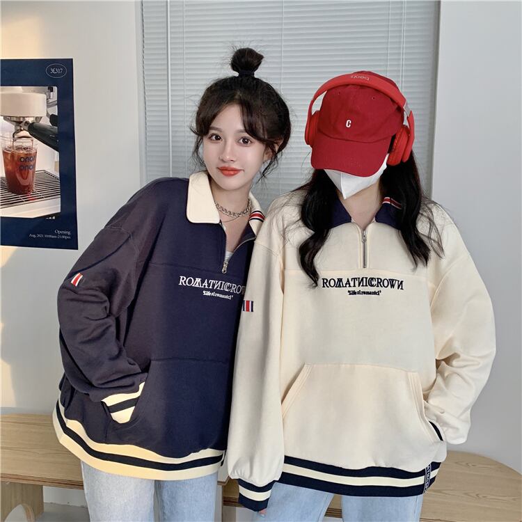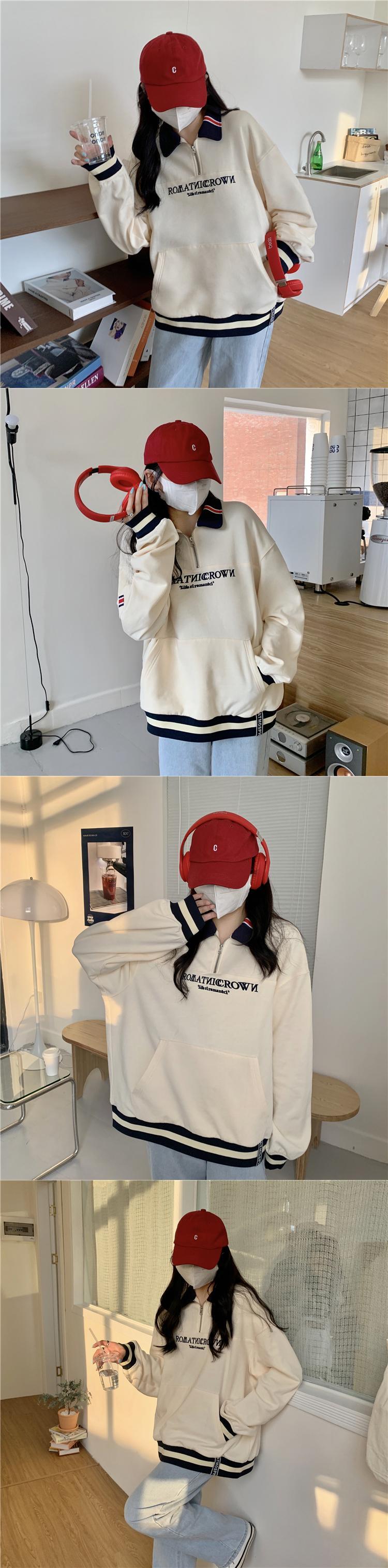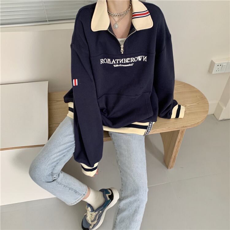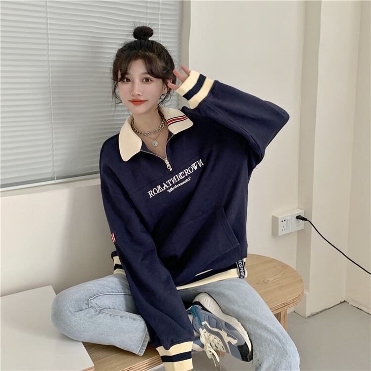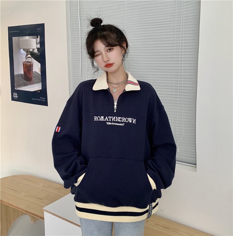 カラージッパープルオーバー セーター オータムスタイル刺繍ルーズコート レディース ロング 秋物 kumikum65553573050